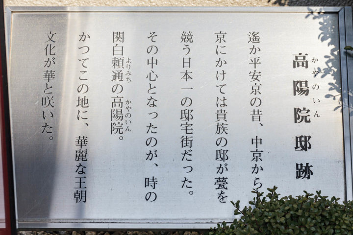 高陽院は四町(250m四方)もあり、どちらの説明板も高陽院敷地内に含まれます。