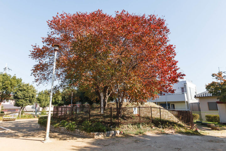 王塚公園の中にある大きさが100mほどの前方後円墳です。周囲を歩くと前方後円墳であることが簡単にわかります。