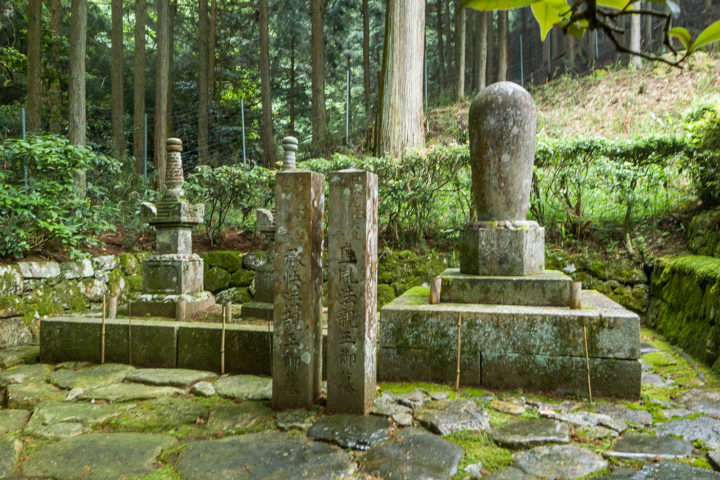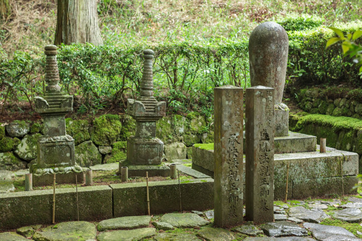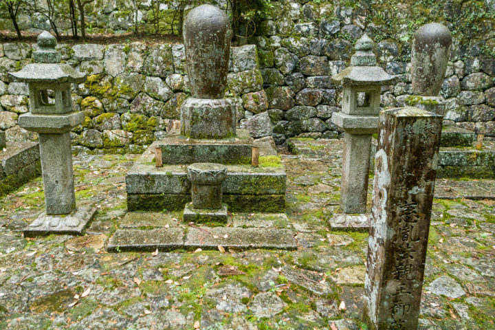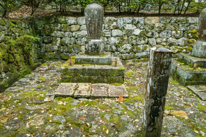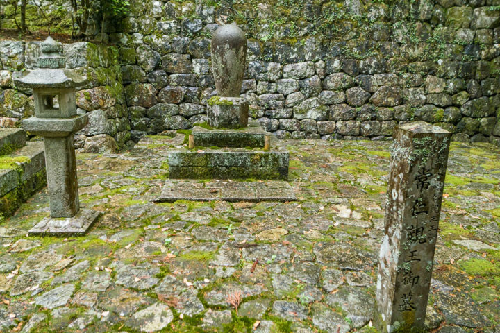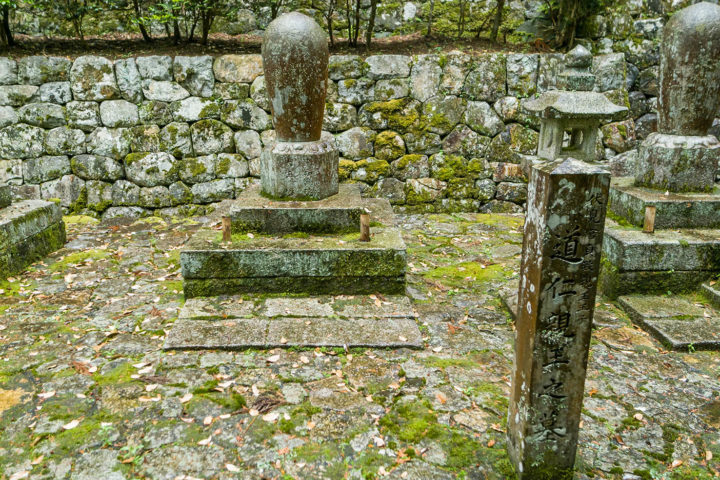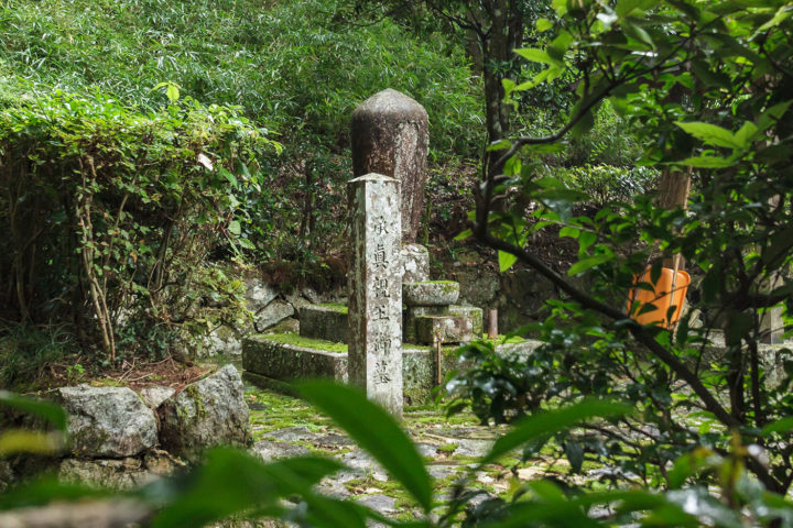 まずは勝林院の北に位置する梶井宮墓地を訪問しました。勝林院本堂の左奥から一般墓地へ続いている道があり、一般墓地の手前で右側に曲がると突き当たりにあります。