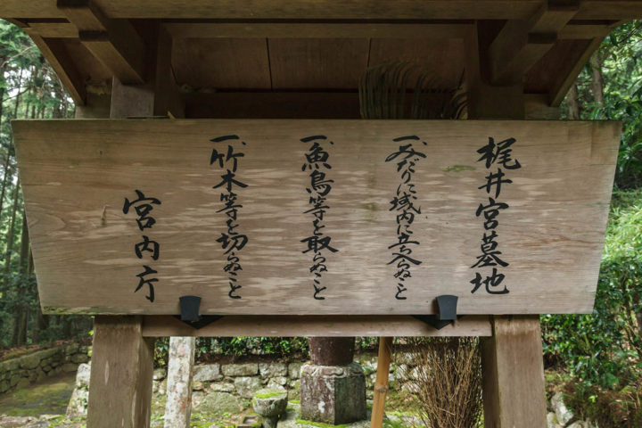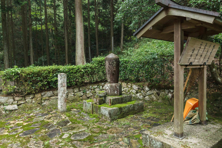 大原陵との境界のフェンスに沿って東へ進み、途中で左に曲がって階段を上ったところにあります。