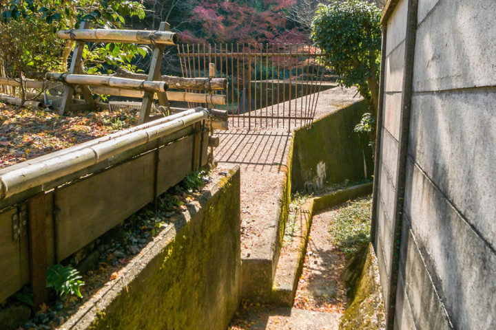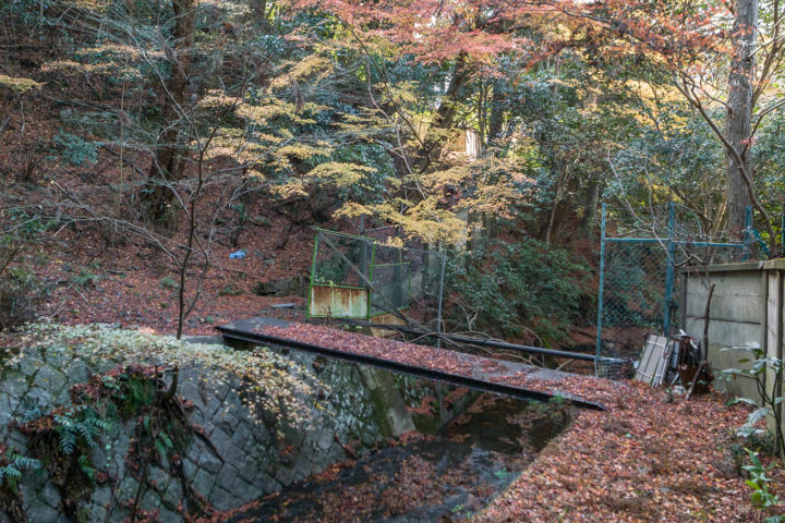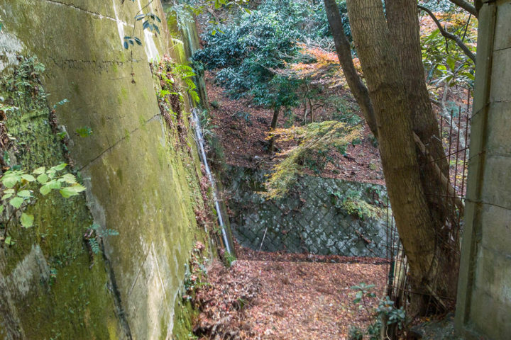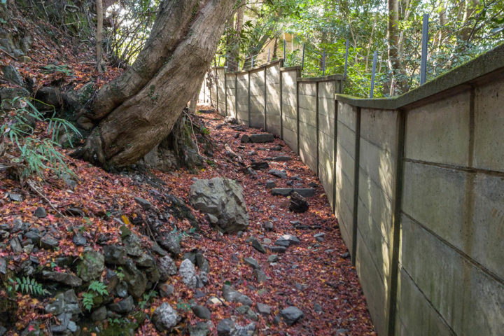 堰堤と塀の間をまっすぐ進みます。