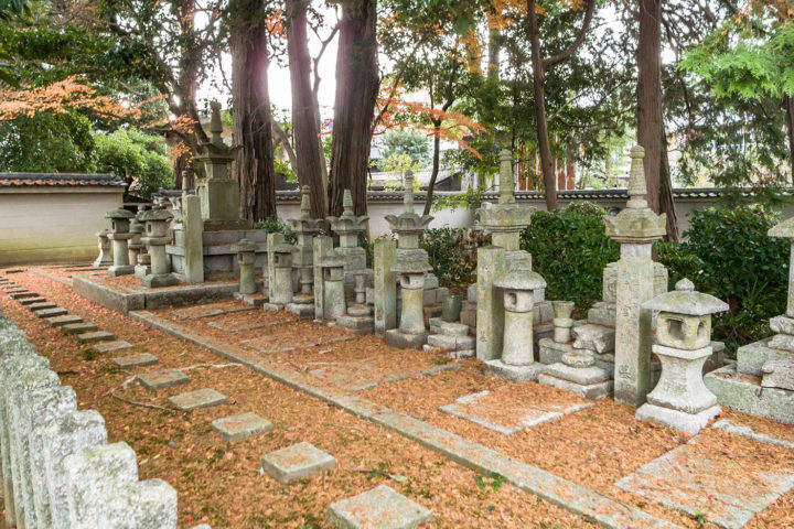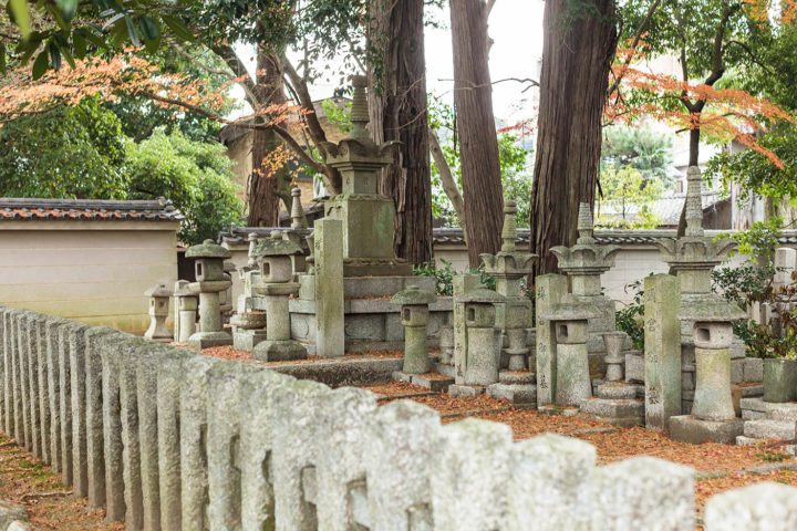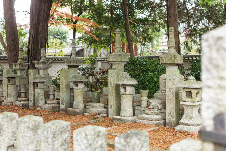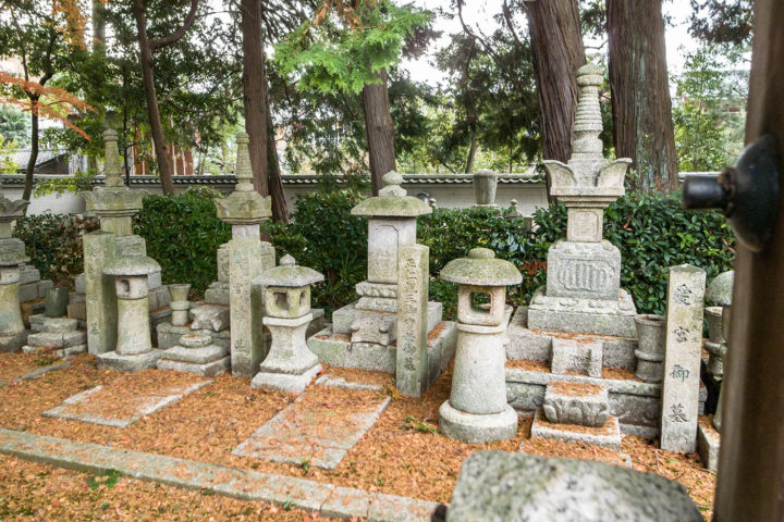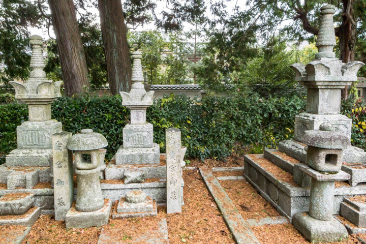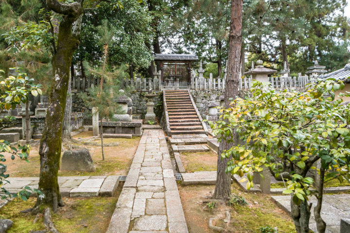 (注)家に帰って調べてみるとここは拝観謝絶になっていました。私が訪問した時は写真1枚目の場所の入口が開いており、奥に入ってみるとすんなり墓地が見つかったのですが、普段はこの入口も門が閉まっているかもしれません。(門の左に勝手口があり出入りはできるようですが・・・) 中で植木職人が作業をしており、トラックも止まっていましたのでたまたま門が開いていたのかもしれません。