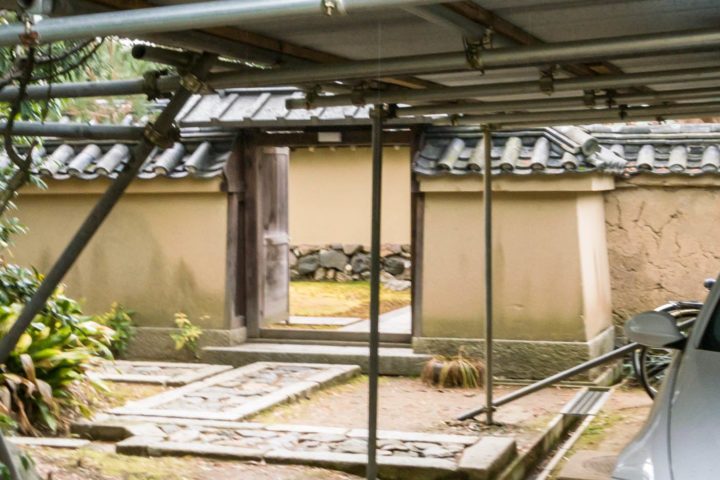 奥に車庫がありその左奥の門をくぐります。