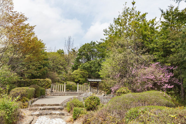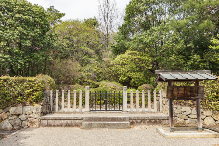 この木のバーが見えるとすぐ突き当たりが円融天皇火葬塚です。