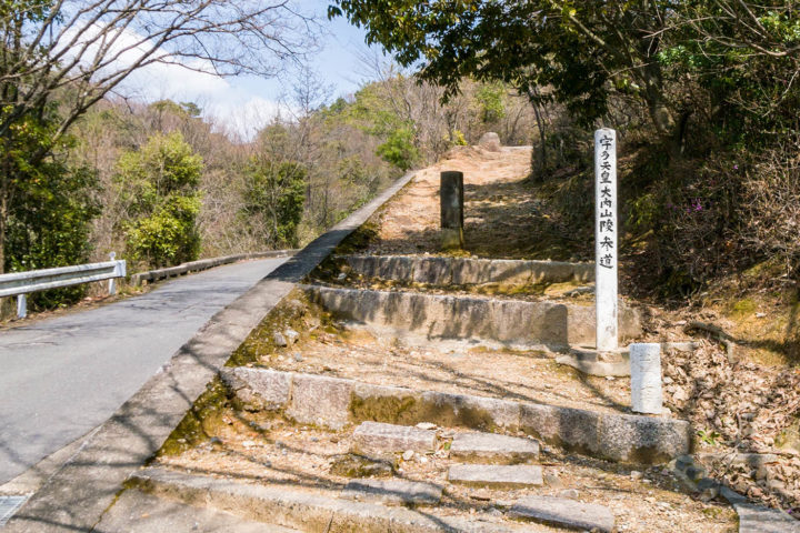 仁和寺からだらだらと上り御室陵墓参考地の前を過ぎ、さらに上って山道に入ると5分ほどで到着します。宇多天皇陵から龍安寺の円融天皇火葬塚方面へ15分ほどで抜ける山道があり、宇多天皇陵訪問後このルートを使って龍安寺内の陵墓を全て制覇しました。