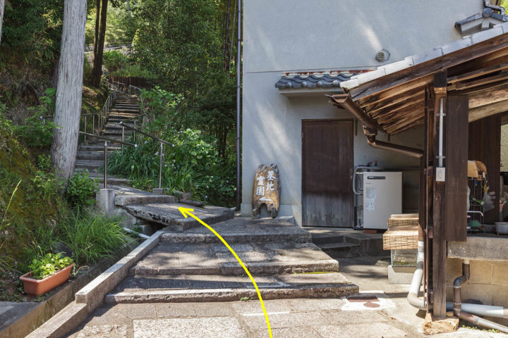 左奥の建物の奥に一般墓地へ行く階段があります。