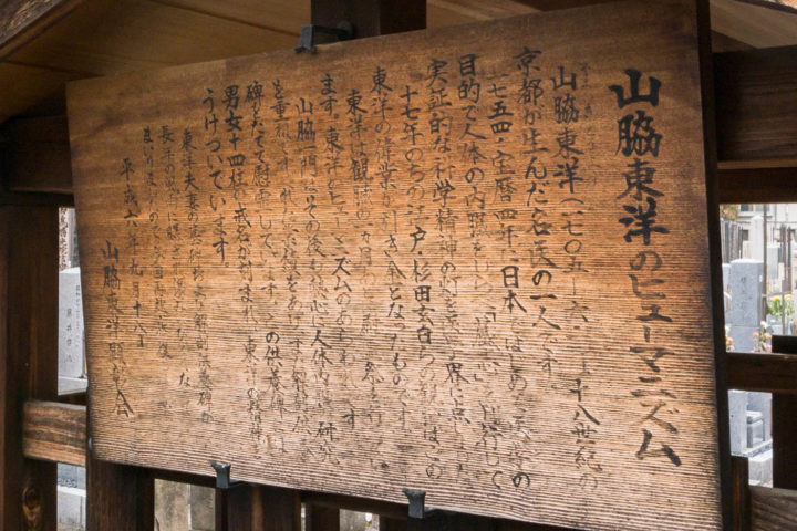墓地へ入るにはまず墓地から50mほど南の誓願寺寺務所に行き、住所、氏名を記入して許可証を発行してもらう必要があります。許可証を持って墓地へ行き、普通の家の入口っぽい真新しい木扉を開けて中に入ると管理人の方が出てきますので、許可証を渡し奥の墓地に入れてもらいます。墓地へ入ってすぐのところに日本で最初の人体解剖を行った医者の山脇東洋の墓もあり、こちらが見学の目玉になっているようです。