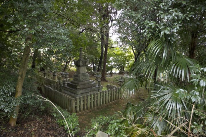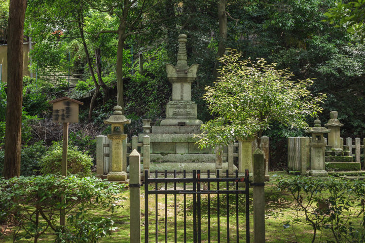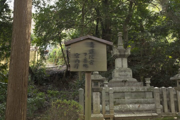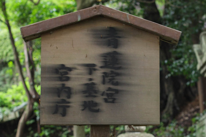 青蓮院宮下ノ墓地は青蓮院宮上ノ墓地前を通り過ぎ、知恩院との境界フェンスに沿って下り、さらに竹林の滑りやすい急坂を下り、突き当たりのT字路を右に曲がればまもなく現れます。上ノ墓地までの行き方は、上ノ墓地のページを参照してください。写真1枚目のように尊勝院に行くまでの道から見えるのですが、正面へ回り込むためにはすごく大回りしなければなりません。