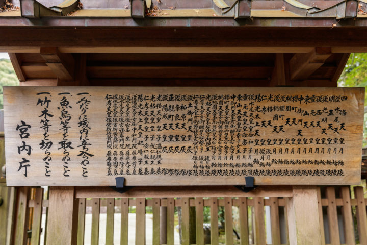 京都 天皇陵 月輪陵後月輪陵 2018-10-26 2025-07-12 つきのわのみささぎ のちのつきのわのみささぎ 上記地図が正常に表示されない場合 京都府京都市東山区今熊野泉山町 JR・京阪 東福寺駅下車 徒歩18分 2010.8.7訪問 四条天皇陵以下二十五陵五灰塚九墓あります。 制札には小さな文字でびっしりと名前が書かれていました。(ひとつひとつ手書きなんでしょうか。制札を交換するとき大変そうですね。) 良純親王墓を訪問する途中で内部が見渡せます。どれが誰の陵墓なのかわかりませんが・・・ 2017年11月11日再訪問しました。 Facebook postはてブLINEPocketFeedly