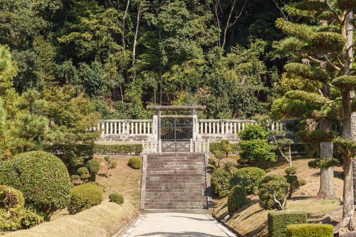 入口からまっすぐ進むと聖武天皇陵、途中で右に曲がると光明皇后陵に突き当たります。