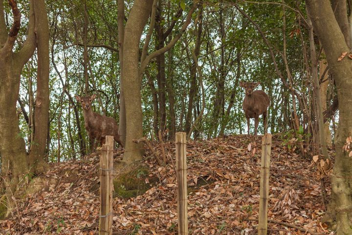 みだりに「陪冢い号」域内に立ち入る鹿2頭