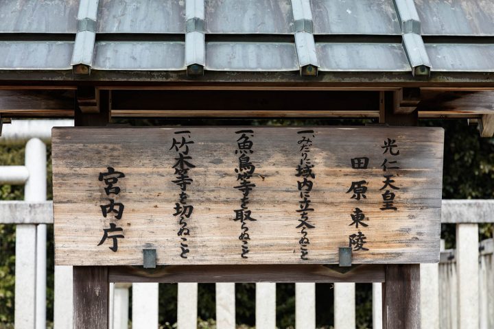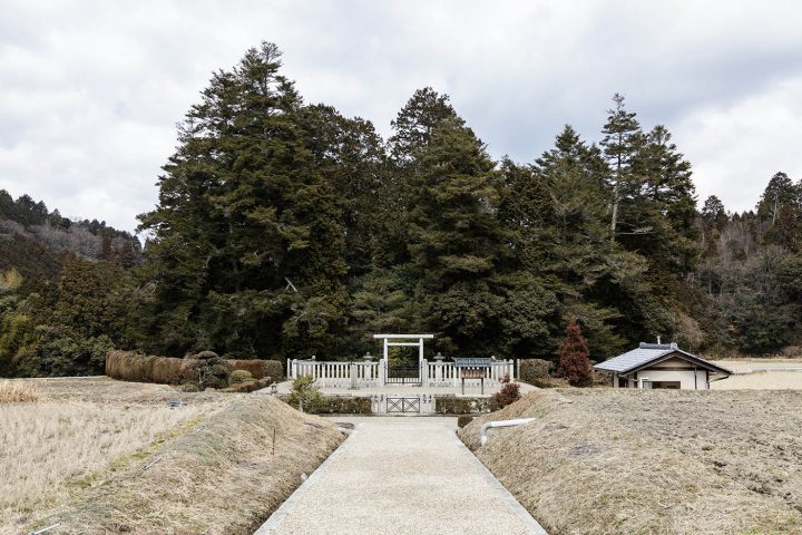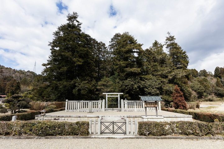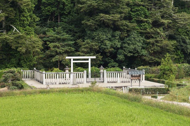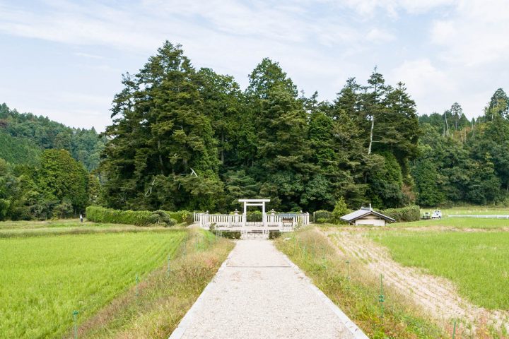 田圃の中にポツンと存在しており、遠くからでもよく見えます。町中の天皇陵も昔は建物に囲まれておらず、皆このような雰囲気だったのではないでしょうか。