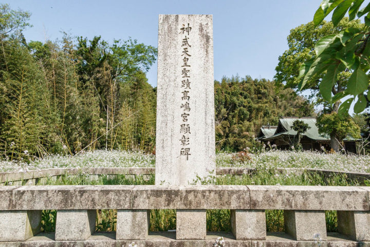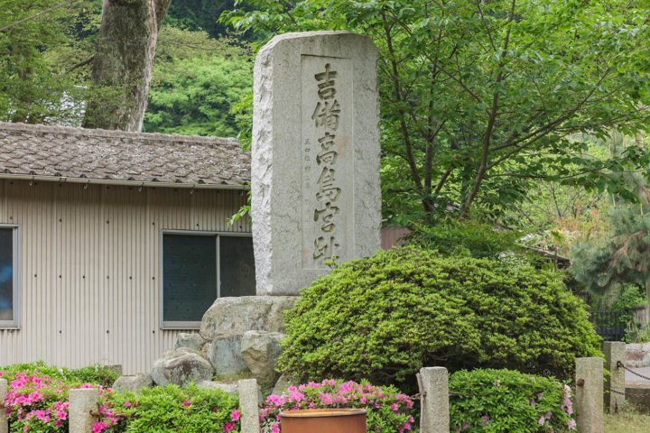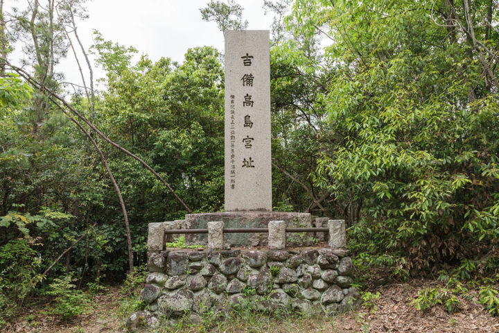 龍ノ口山の南西の山麓に高島神社があり、神社手前左に吉備高島宮址碑が建っています。