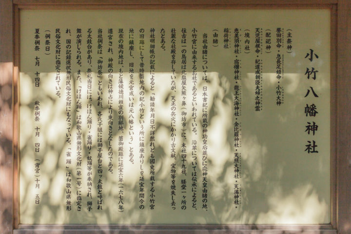 現在の小竹八幡神社は紀州鉄道西御坊駅の近くにあります。車だとここに辿り着くまでは一方通行が多く道幅も狭いので、大通りのコンビニの駐車場に車を止めて神社まで歩くのが良いと思います。