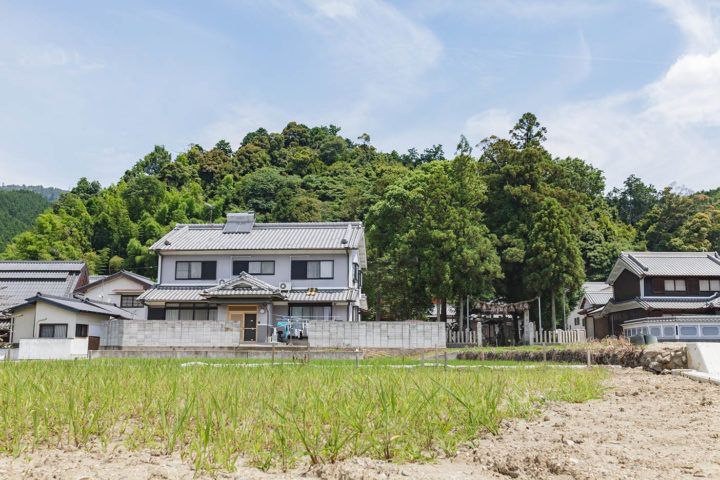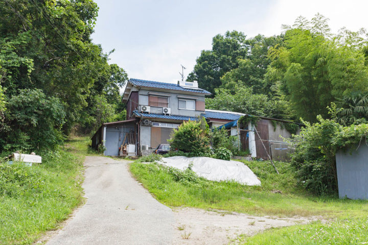 地図の天の森への赤線起点の場所です。舗装道路はこの家の前で終わり山道に入ります。