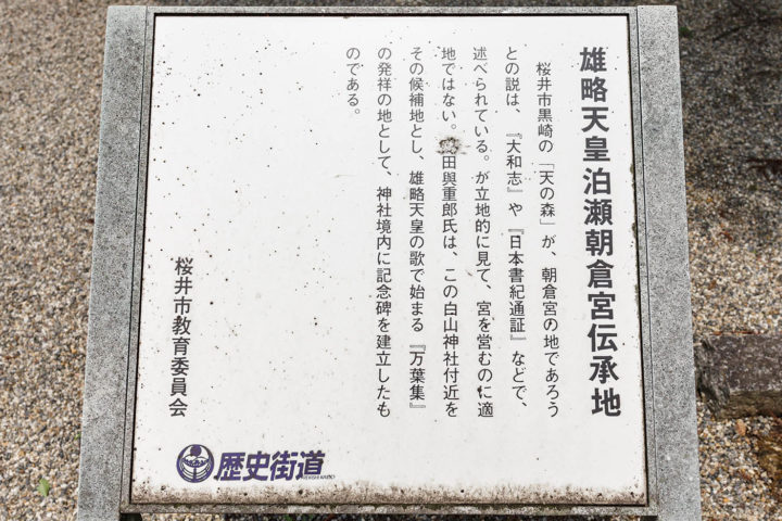 1974年(昭和59年)脇本の春日神社付近で5世紀後半の建物遺構が発見され、泊瀬朝倉宮の可能性が高いと言われています。