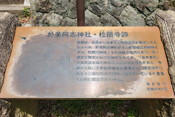 宮都 檜隈廬入野宮 2019-04-16 2019-04-26 第28代 宣化天皇 ひのくまのいおりののみや 奈良県高市郡明日香村檜前 近鉄飛鳥駅下車 徒歩15分 2012.5.26訪問 檜前(ひのくま)集落東南はずれの於美阿志(おみあし)神社の鳥居右側に石碑があります。於美阿志神社は檜隈寺跡に建立され、境内奥には重要文化財に指定されている平安時代の石塔婆(十三重石塔)が建っています。 十三重石塔(重要文化財) 東の幹線道路から於美阿志神社の茂みを望む Facebook postはてブLINEPocketFeedly