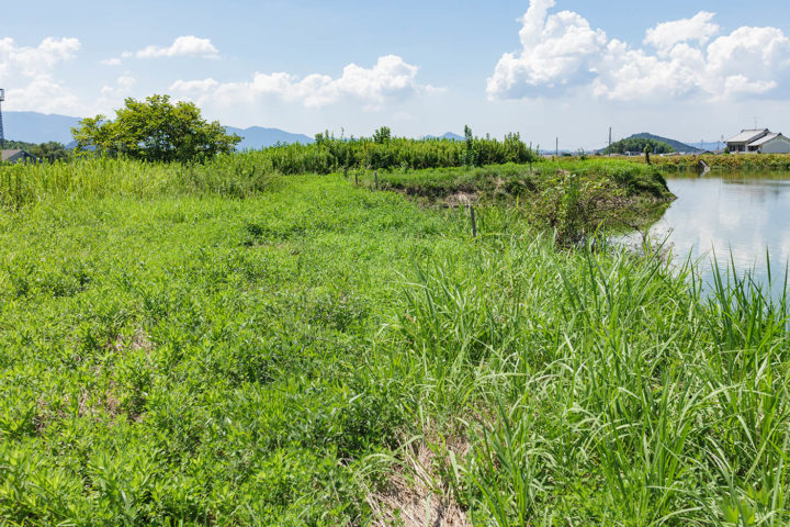 1997年に吉備池の堤防から7世紀半ばの巨大な寺院金堂跡と見られる基壇が出土し、舒明天皇の時代に建てられた百済大寺跡の有力候補地となりました。吉備池の周りは雑草が茂っていて歩きにくいですが一周することができます。
