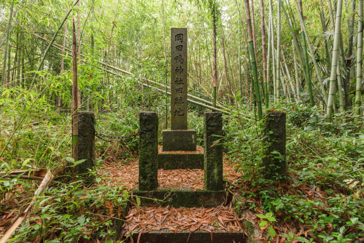 岡田鴨神社旧跡地石碑は、岡田鴨神社の西の竹藪の中にありますが、案内板が無いため行き方がわかりにくいです。