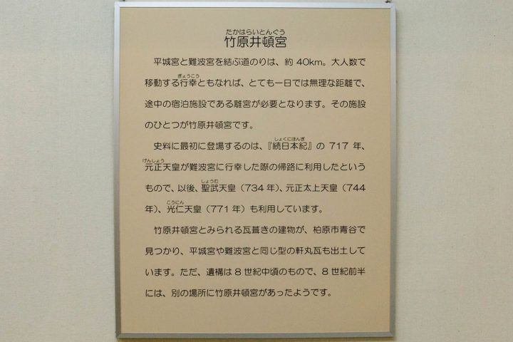 JR高井田駅から北へ歩いて5分ほどのところにある柏原市立歴史資料館には、竹原井行宮のほか同じ柏原市にあったとされる智識寺南行宮に関する資料が豊富でした。
