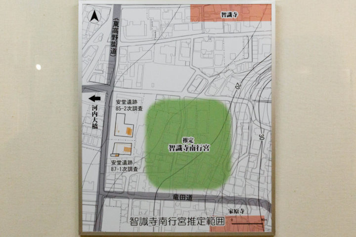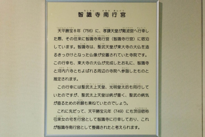 孝謙天皇が平城京から難波宮へ行幸した際、古代寺院河内六寺の一つ智識寺の南に行宮が造られました。