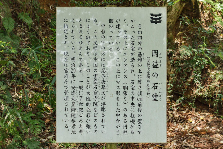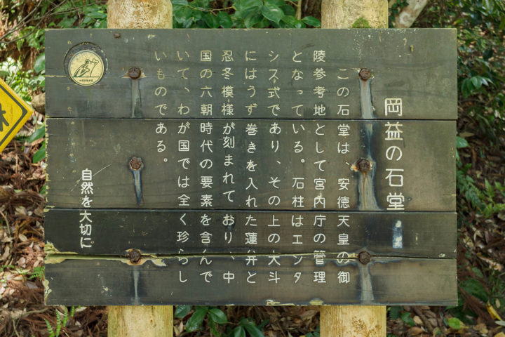中国・四国・九州 陵墓参考地 宇倍野陵墓参考地 2019-02-04 2019-02-09 うべのりょうぼさんこうち 該当御方:安徳天皇?あんとくてんのう? 鳥取県鳥取市国府町岡益 JR鳥取駅から車で15分 岡益石堂前駐車場 駐車場から徒歩2分 2011.5.14訪問 岡益石堂(おかますのいしんどう)と呼ばれる石塔が陵墓参考地に指定されています。かなり崩壊が激しかったようですが、現在は屋根も設置され保護されています。 Facebook postはてブLINEPocketFeedly