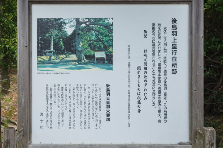 中国・四国・九州 後鳥羽天皇火葬塚 2019-02-06 2019-02-10 ごとばてんのうかそうづか 島根県隠岐郡海士町海士 菱浦港から車で7分 隠岐神社駐車場 駐車場から徒歩2分 2011.8.5訪問 1221年の承久の乱に敗れて隠岐島に配流され、この地で崩御し火葬されました。 息子達も、順徳天皇は佐渡島に、雅成親王は但馬の高屋に、頼仁親王は備前の児島にそれぞれ配流となりました。 現地に行くとわかりますが、右側の土手には簡単に上ることができ、土塀内部の円丘を眺められます。 後鳥羽上皇行在所跡 Facebook postはてブLINEPocketFeedly